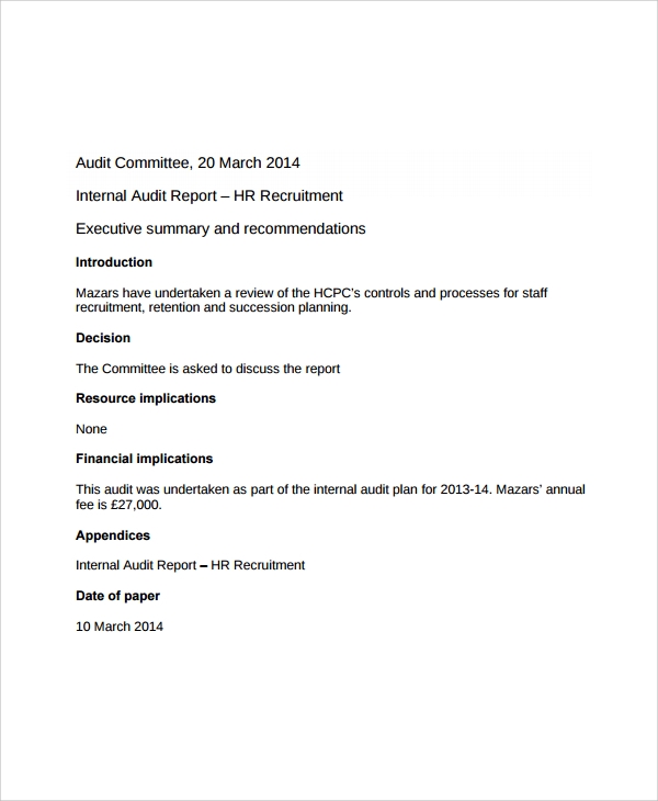 Sample Hr Audit Report Template